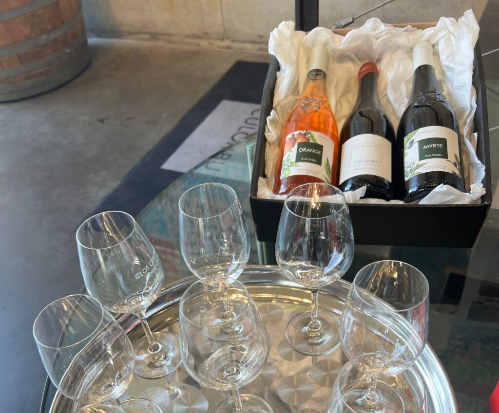 Efter rundtur och lunch fortsätter vi mot en av regionens mest välkända vingårdar, Clos Columbo. Här får vi prova flera olika viner – med särskilt fokus på Korsikas uppskattade roséviner. Allt sker i en naturskön miljö, omgiven av fruktodlingar och berg.
